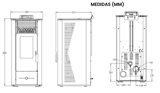 Estufa de pellets SEMA DS11 11kW canalizable y no canalizable.