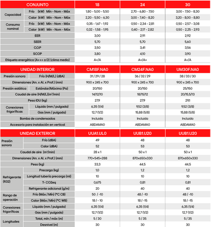 Peso Unidad Exterior: 33,3 kg – 44,5 kg – 44,5 kg